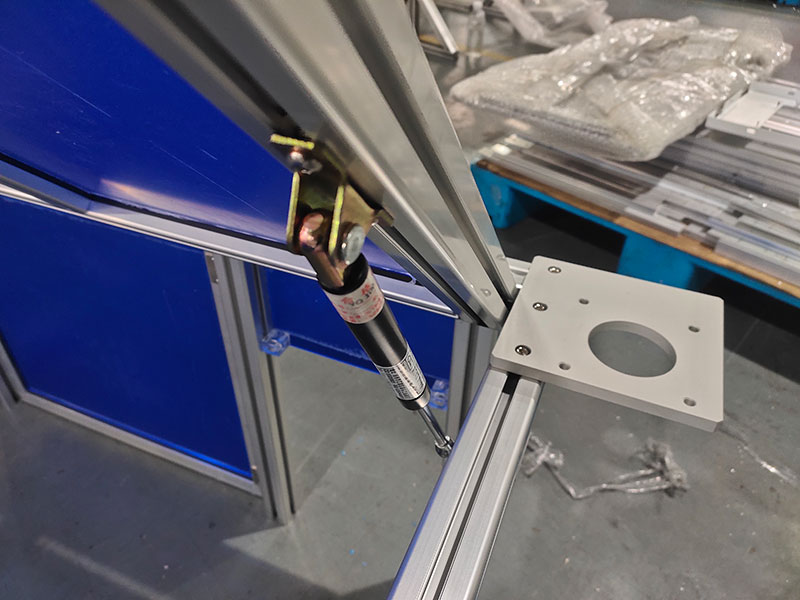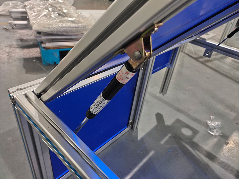這個成人看片网站設備防護罩頂部蓋板可以打開一個角度並固定住,也可以輕輕蓋上。實現這一功能的是蓋板上安裝的氣彈簧。氣彈簧又被稱為支撐杆、氣支撐、調角器、氣壓棒、阻尼器等,是一種可以實現支撐、緩衝、製動、高度及角度調節等功能的零件,在工程機械中,主要應用於罩蓋、門等部位。